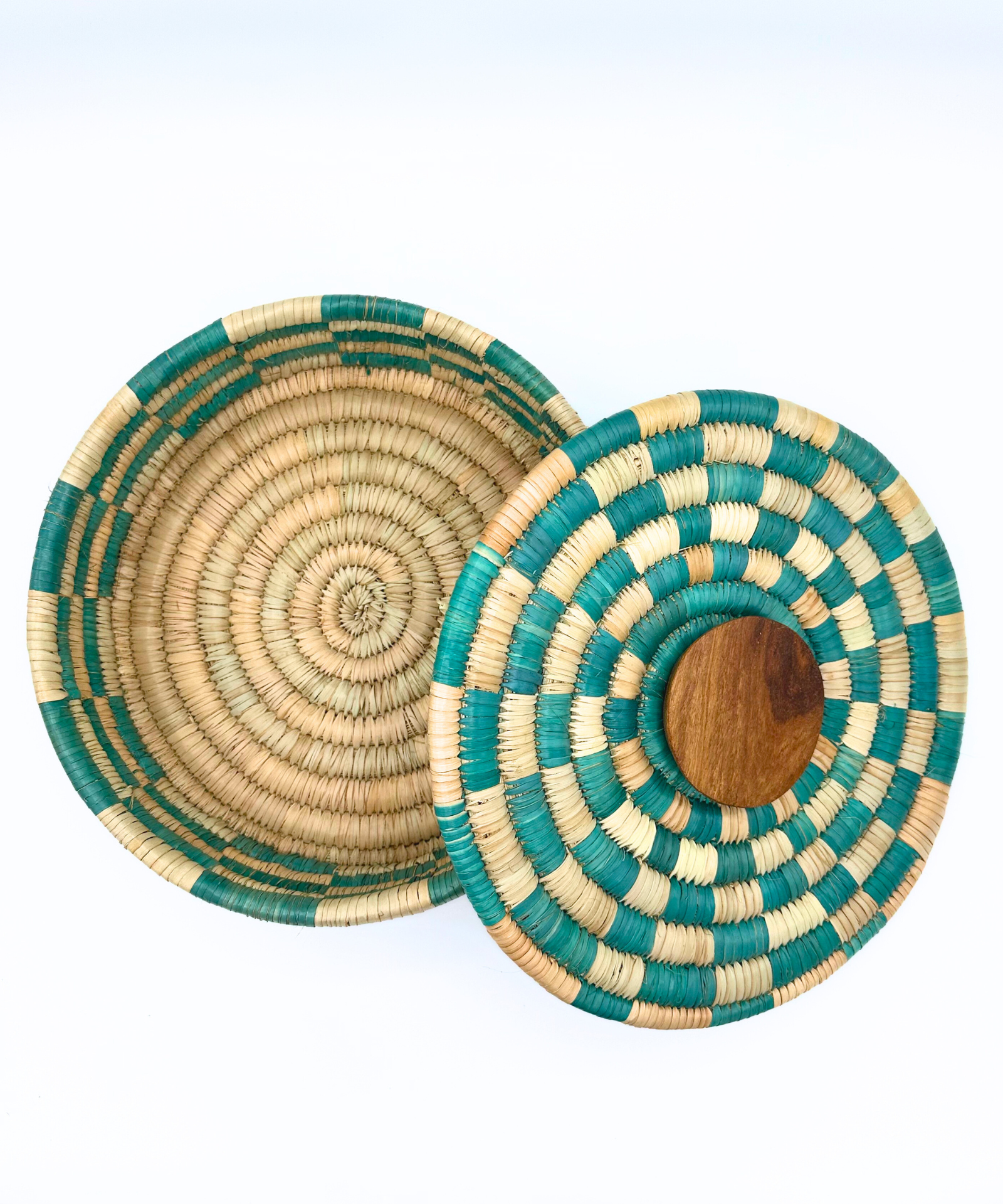 - Basket "Natural" & "Green with carved knob": diameter approx. 26.5 cm, height approx. 8 cm (with lid & knob approx. 11 cm)