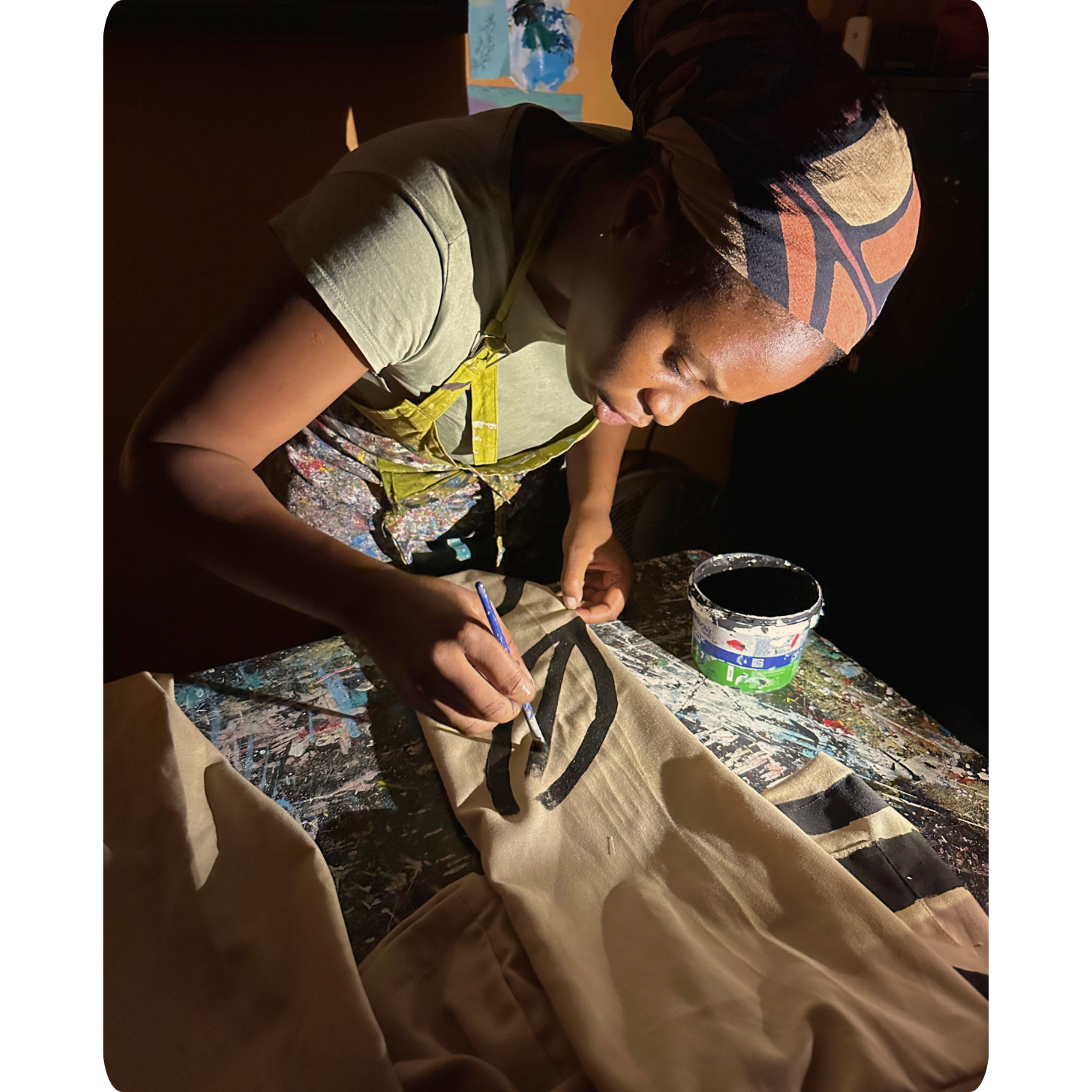 Wenafwi schöpft ihre Inspiration aus der malawischen Kultur und interpretiert traditionelle Formen neu. In ihrem Studio in Blantyre entstehen handbemalte Jacken, unterstützt von ihren Helfern Aretha und Moses, die sie selbst ausgebildet hat. Gemeinsam schaffen sie bis zu sechs Jacken am Tag – jedes Stück ein Unikat, das Kunst und Nachhaltigkeit vereint.