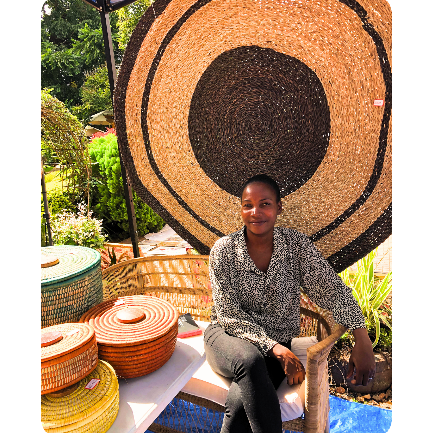 Die handgefertigten Körbe und Tabletts von Elyn Createions vereinen traditionelles Handwerk mit modernem Design. Aus lokalen Materialien wie Bambus, Palmblättern (Mlaza), Baumwollfäden und Muwanga-Holz entstehen in bis zu drei Tagen einzigartige Stücke. Dank pflanzenbasierter Färbetechniken wird jeder Korb zu einem Unikat.
