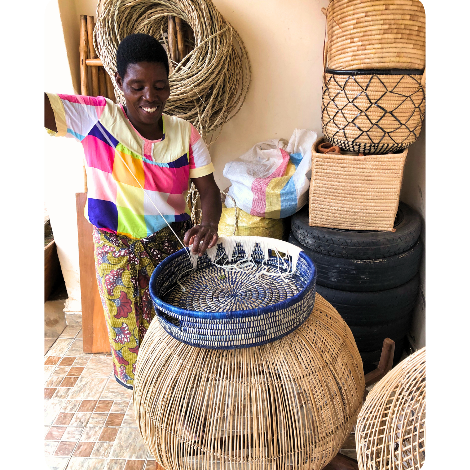 Mit dem Kauf einem dieser Körbe und Tabletts unterstützt du Sinthani, eine talentierte junge Mutter und Unternehmerin und ihre inzwischen 15 angestellten Frauen und Männer in ihren kleinen Werkstätten in Lilongwe und Blantyre.